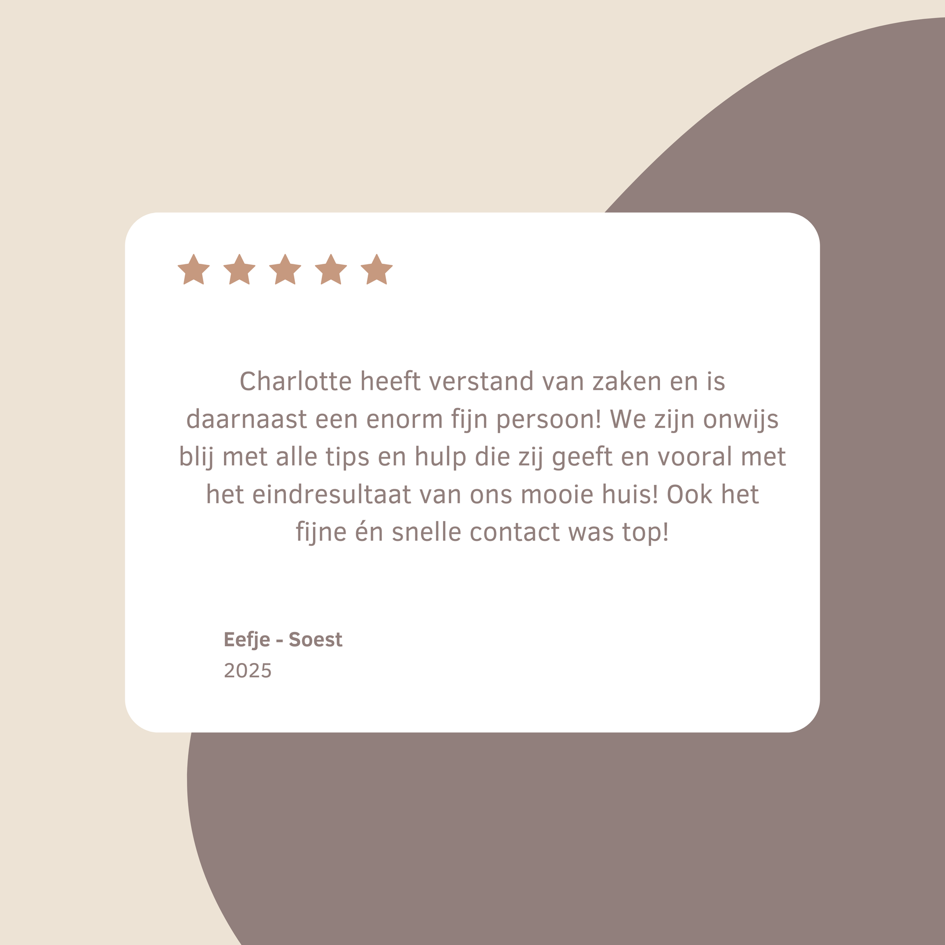 Ik heb geadviseerd voor wat betreft kleuren in het interieur, de indeling van de ruimte en meegedacht voor wat betreft meubelkeuzes.