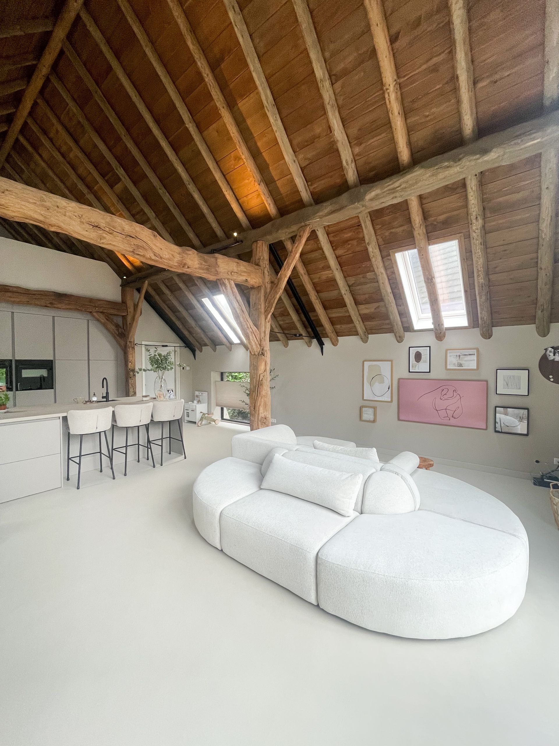 En als kers op de taart is de rugleuning van de designklassieker Leolux Pallone voorzien van een hoes, zodat deze weer helemaal in het nieuwe interieur past!