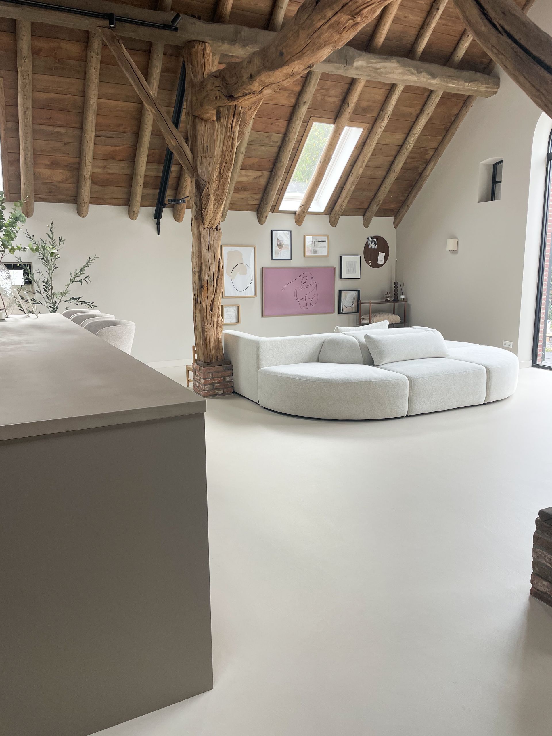 Op de wanden zijn diepe, warme tinten toegepast en de vloer is een PU-gietvloer geworden die mooi aansloot bij de kleurkeuzes van de wanden.